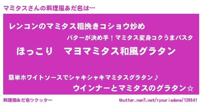 | 男性向けラノベタイトル風あだ名 | 『この素晴らしい世界にマミタスを!』 |