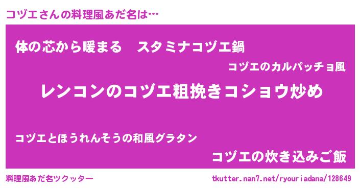 | ファンタジー風あだ名 | 『ゼコヅトゥ』『エターナルコヅエー』 |