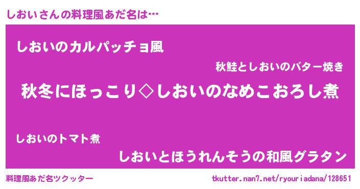 | 男性向けラノベタイトル風あだ名 | 『しおいに滅ぼされるだけの簡単なお仕事です』 |