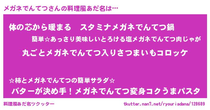 | 意味不明あだ名 | 『住所不定無職メガネでんてつ(81歳)』 |
