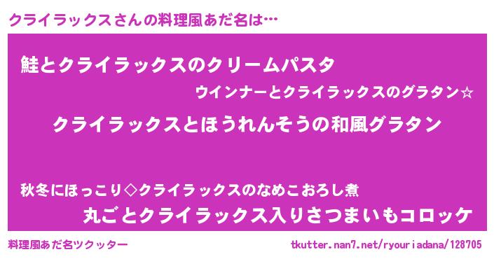 | ヒーロー風カッコイイあだ名 | 『慈愛の使者クライラックス』 |