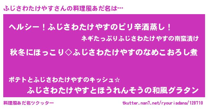| 男性向けラノベタイトル風あだ名 | 『ふじさわたけやすに滅ぼされるだけの簡単なお仕事です』 |