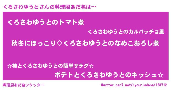 | ヘコむあだ名 | 『くろを』『くろにー』『なまこ酢』 |