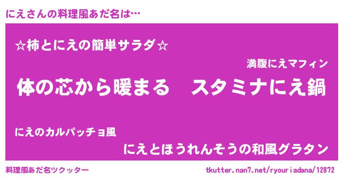 | 意味不明あだ名 | 『にえフォーエバー』『たけのこ科にえ属』 |