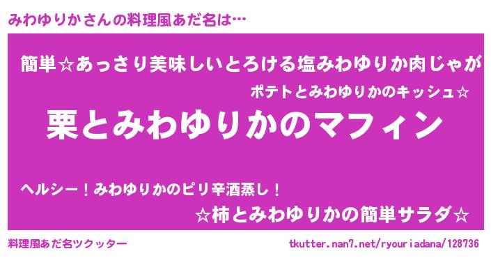 | ヘコむあだ名 | 『みわゆりか(苦笑)』『みわぷりん』 |