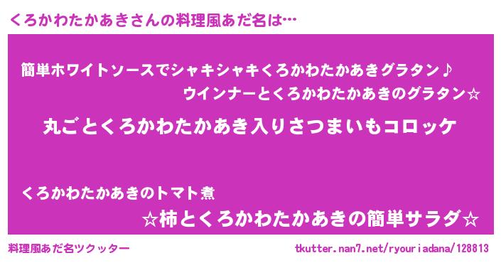 | 男性向けラノベタイトル風あだ名 | 『魔弾の王とくろかわたかあき』 |