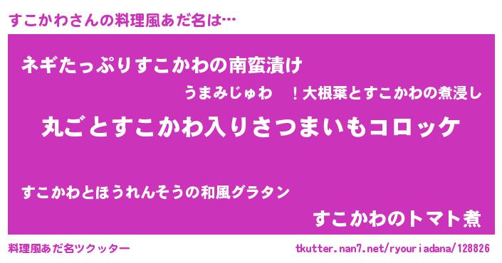 | 女子向けラノベタイトル風あだ名 | 『乙女ゲームの破滅フラグしかない悪役すこかわに転生してしまった…』 |