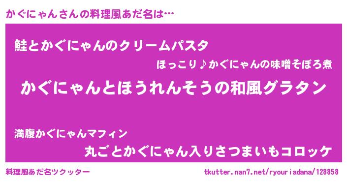 | ヘコむあだ名 | 『かぐにゅー』『かぐにゃん(遠い目)』 |