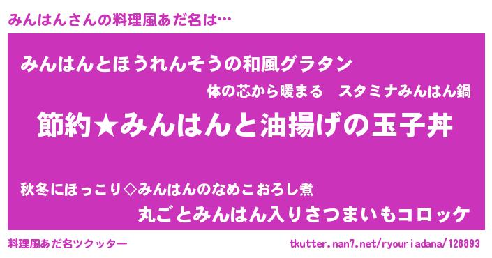 | 胡散臭い通販商品みたいなあだ名 | 『モテモテ間違いなし水晶球…その名も「みんはん」』 |