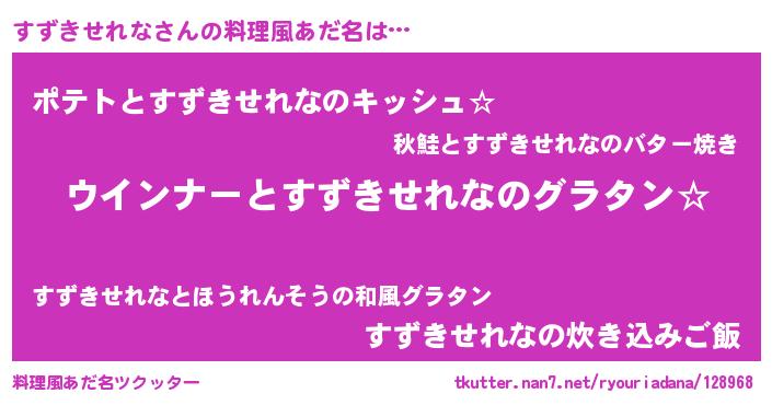 | ポケモン風あだ名 | 『スズキダネ』『ヒスズキセレナ』 |