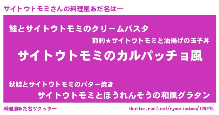 | 意味不明あだ名 | 『住所不定無職サイトウトモミ(93歳)』 |