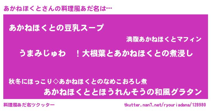| ポケモン風あだ名 | 『アカネダネ』『ヒアカネホクト』 |