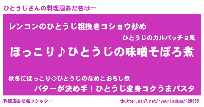 | 意味不明あだ名 | 『ペロリンひとうじ』『自称ひとうじ』 |