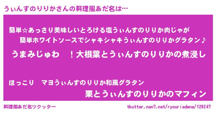 | 欧米人風あだ名 | 『うぃんすのりりかクリステル』 |