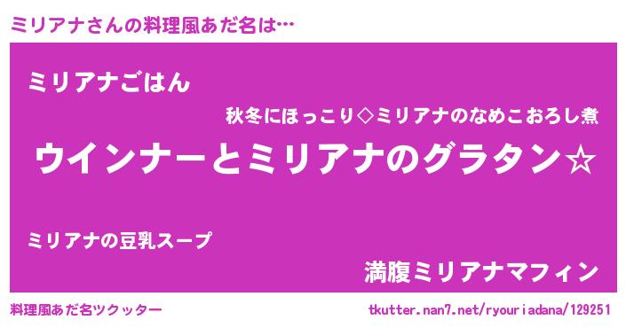 | ポケモン風あだ名 | 『ミリアダネ』『ミリキング』 |