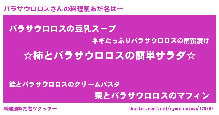 | 胡散臭い通販商品みたいなあだ名 | 『信頼と実績のサプリメント…その名も「バラサウロロス」』 |