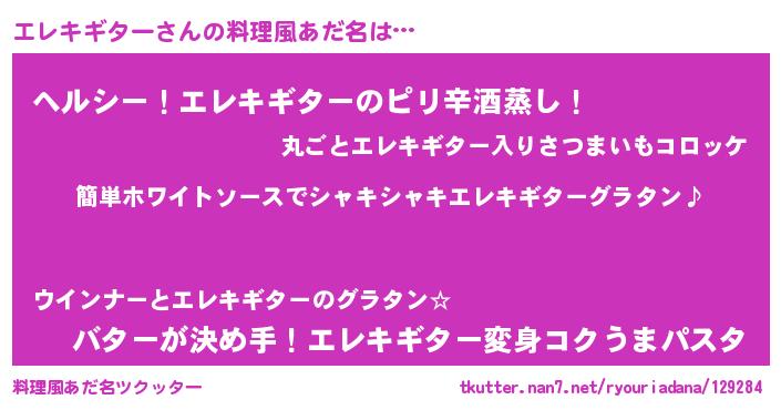 | 男性向けラノベタイトル風あだ名 | 『エレキギターの嫁は女の子じゃないと思った?』 |