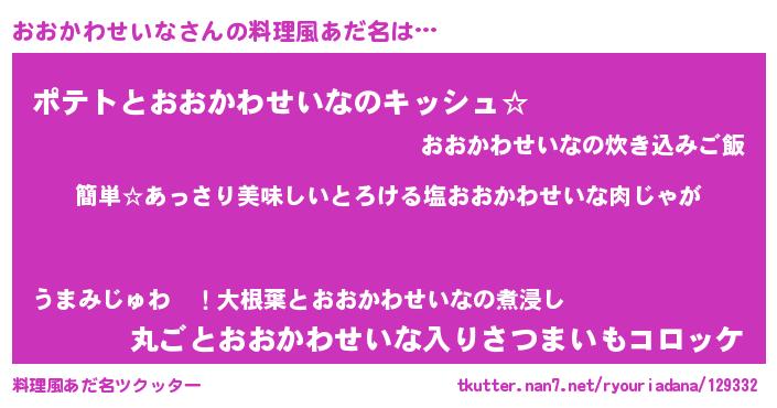| ヘコむあだ名 | 『おおかわせいな(遠い目)』『おおお』 |