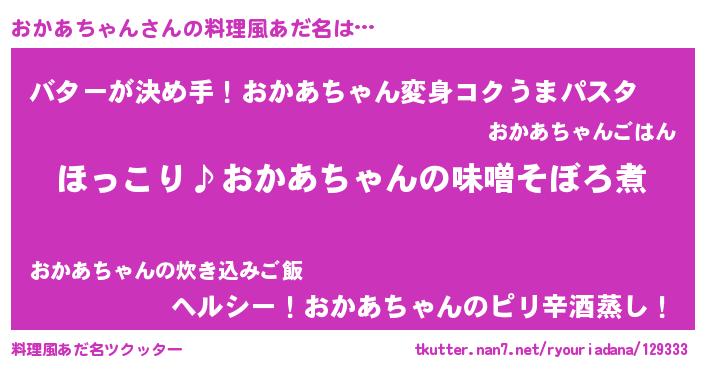 | 女子向けラノベタイトル風あだ名 | 『(仮)おかあちゃんのやんごとなき事情』 |