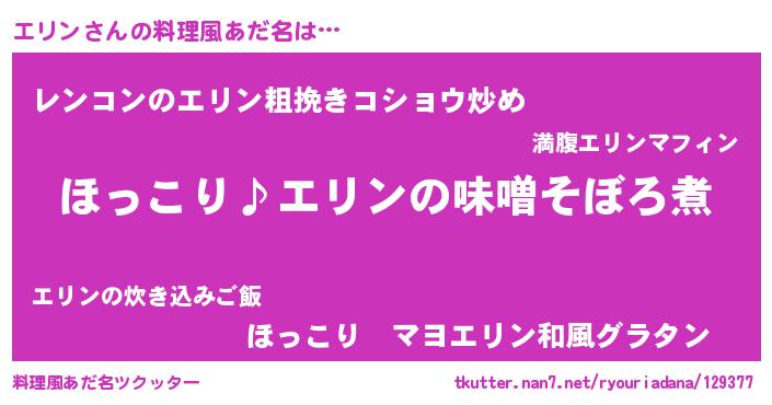 | ヒーロー風カッコイイあだ名 | 『スーパーエリン』『超時空戦士エリン』 |
