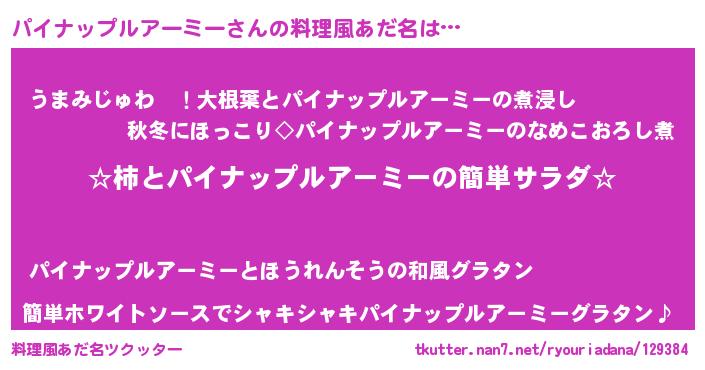 | 男性向けラノベタイトル風あだ名 | 『緋弾のパイナップルアーミー』 |