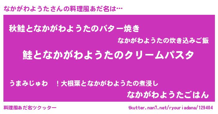 | 可愛いあだ名 | 『なかちゅっちゅ』『なかがわようたママ』 |