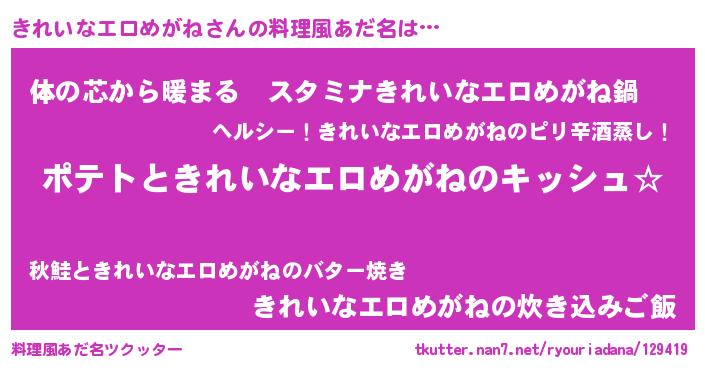 ポケモン風あだ名 | 『ヒキレイナエロメガネ』『キレイダネ』 |