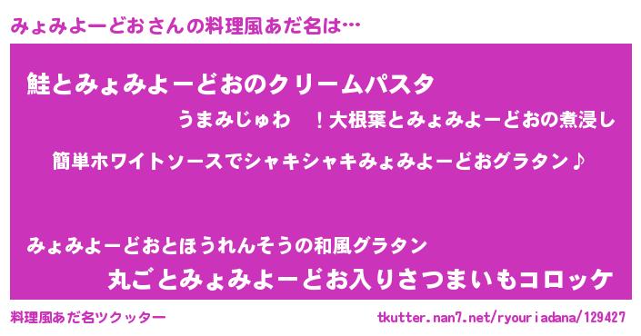 | 男性向けラノベタイトル風あだ名 | 『みょみよーどおの嫁は女の子じゃないと思った?』 |