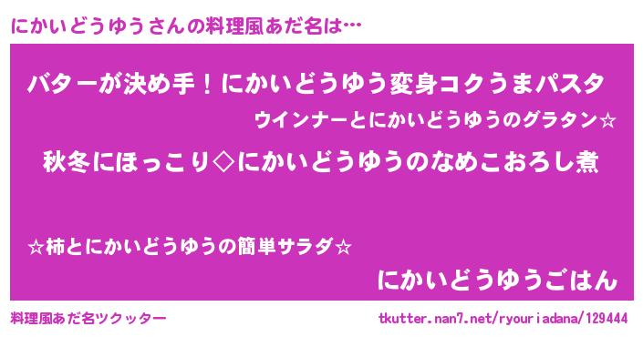 | ヘコむあだ名 | 『なまこ酢』『にかお』『にかにー』 |