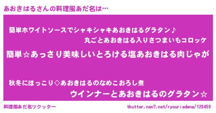 | ヘコむあだ名 | 『あおきはる(笑)』『あお太郎』 |