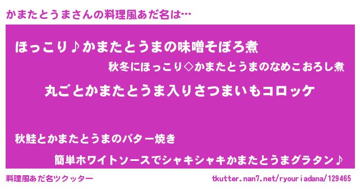 | 男性向けラノベタイトル風あだ名 | 『この素晴らしい世界にかまたとうまを!』 |