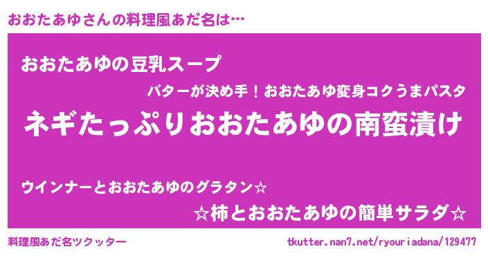| 胡散臭い通販商品みたいなあだ名 | 『億万長者になれるブレスレット…その名も「おおたあゆ」』 |