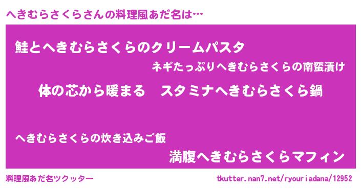 | 意味不明あだ名 | 『へきむらさくらフォーエバー』 |