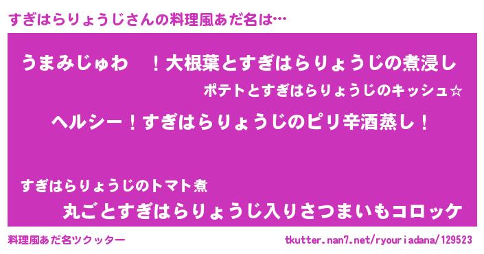 | 意味不明あだ名 | 『自称すぎはらりょうじ』 |