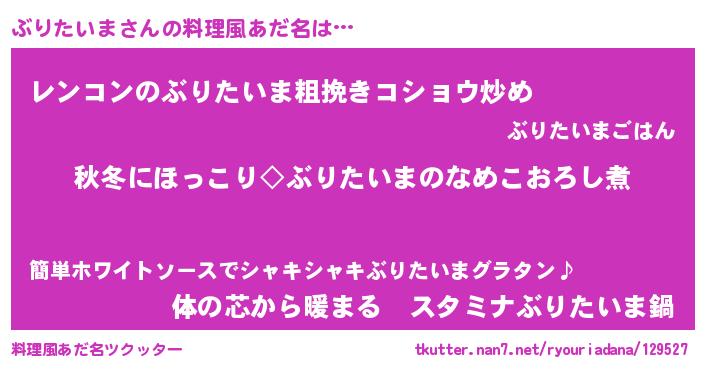 | 男性向けラノベタイトル風あだ名 | 『ぶりたいまに滅ぼされるだけの簡単なお仕事です』 |