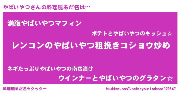 | 意味不明あだ名 | 『自称やばいやつ』『永久保存やばいやつ』 |