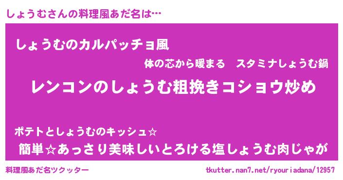 | ヘコむあだ名 | 『しょうむ(苦笑)』『なまこ酢』 |