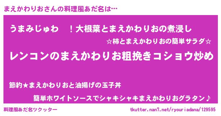 | 意味不明あだ名 | 『自称まえかわりお』 |
