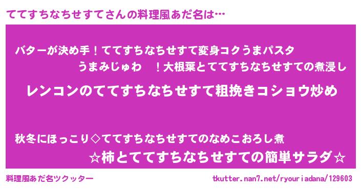 | 女子向けラノベタイトル風あだ名 | 『ててすちなちせすてなんてお断りですっ。』 |