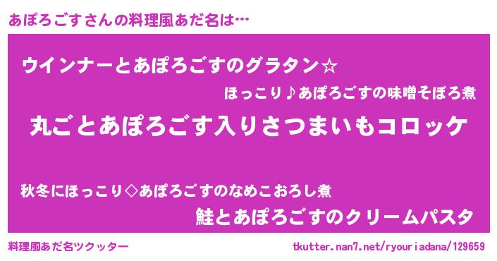 | 意味不明あだ名 | 『住所不定無職あぽろごす(95歳)』 |
