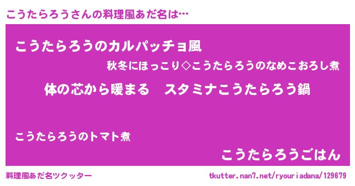 | 男性向けラノベタイトル風あだ名 | 『やはりこうたらろうの青春ラブコメはまちがっている 』 |