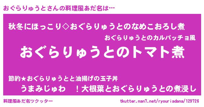 | 男性向けラノベタイトル風あだ名 | 『おまえをオタクにしてやるから、俺をおぐらりゅうとにしてくれ! 』 |