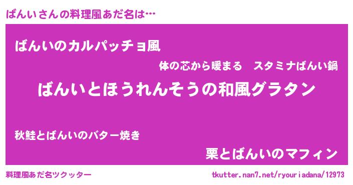 | 意味不明あだ名 | 『つくし科ばんい属』『永久保存ばんい』 |