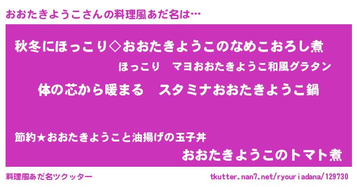 | 女子向けラノベタイトル風あだ名 | 『おおたきようこの雑貨屋さん』 |