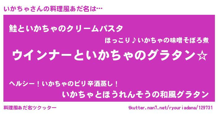 | 女子向けラノベタイトル風あだ名 | 『いかちゃ伯爵の花嫁』『闇のいかちゃ』 |