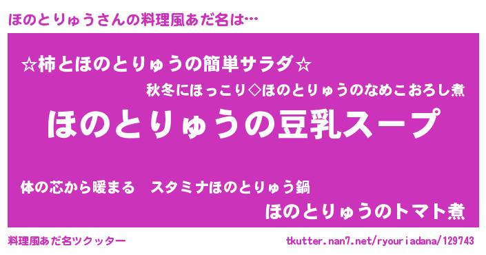 | 女子向けラノベタイトル風あだ名 | 『ほのとりゅうは平凡を望む』 |