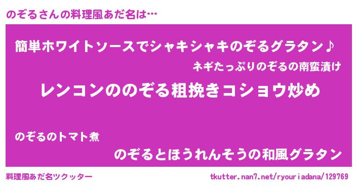 | ピコ太郎風あだ名 | 『ノゾ二郎』『ノコ史郎』『ノノ太郎』 |