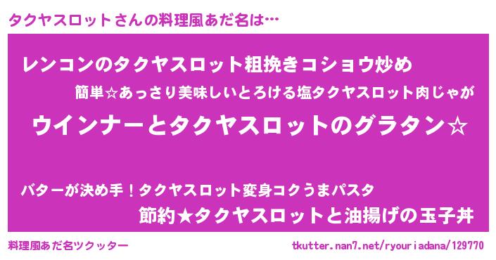 | ファンタジー風あだ名 | 『エターナルタクヤスロットー』 |