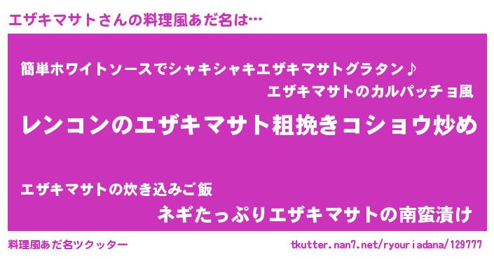 | ポケモン風あだ名 | 『エザセウス』『ヒエザキマサト』 |