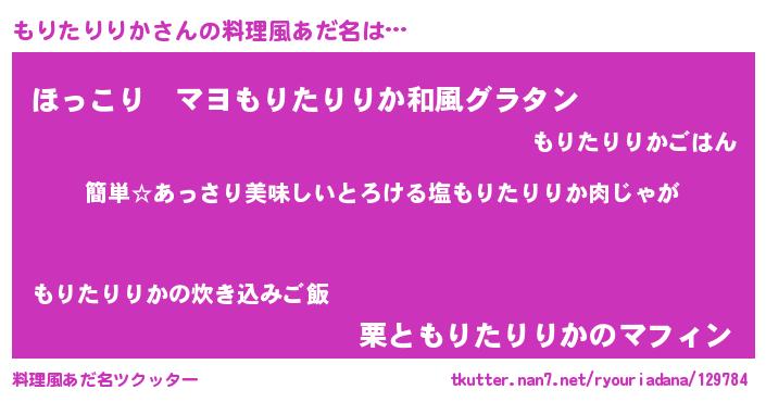 | ヘコむあだ名 | 『もりたりりか(爆)』『もりお』 |